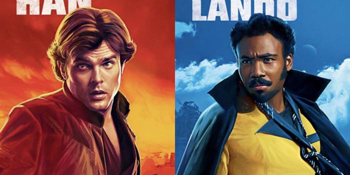 Montaje con los pósters de Han Solo (Alden Ehrenreich) y Lando Calrissian (Donald Glover)