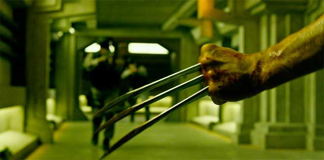 - La escena de Lobezno / Wolverine. Cuando aparece el personaje de Lobezno lo vemos totalmente salvaje y con la tecnología que llevaba en los cómics que lo transformaban en Arma X.