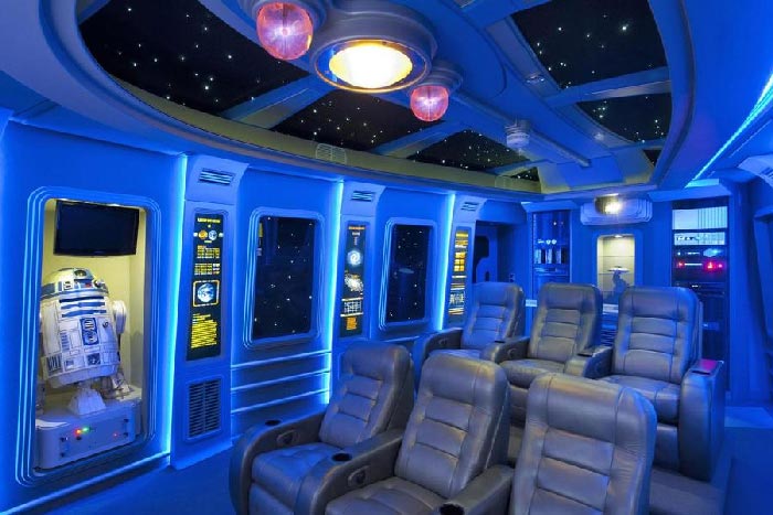 Casas privadas, hoteles… pero eso no es todo. En Hawaii puedes encontrar este maravilloso cine creado por un fan de Star Wars. Con todo lujo de detalles, te hará sentir como en el interior de una nave y es que, no solo la decoración, sino también la iluminación acompaña. En su interior encontramos de R2D2 y C3PO. ¡Ideal para el estreno del episodio VIII!