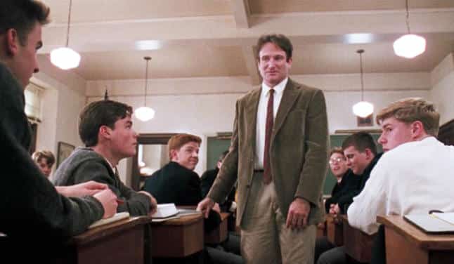 ¿Quién no ha gritado nunca “¡Oh Capitán, mi Capitán!”?, pues todos seguro que lo hemos hecho alguna vez ya que esta película ha marcado a todo aquel que la ha visto. Nuestro adorado Robin Williams, que en paz descanse, interpreta en la cinta a un profesor atípico, John Keating. Este profesor no quiere que sus alumnos se aprendan la teoría de la literatura al pie de la letra sino que prefiere que estos aprendan el significado de la vida y de cómo esta pasa volando, por lo que hay que exprimirla al máximo y sacar todo el jugo que esta te pueda ofrecer.