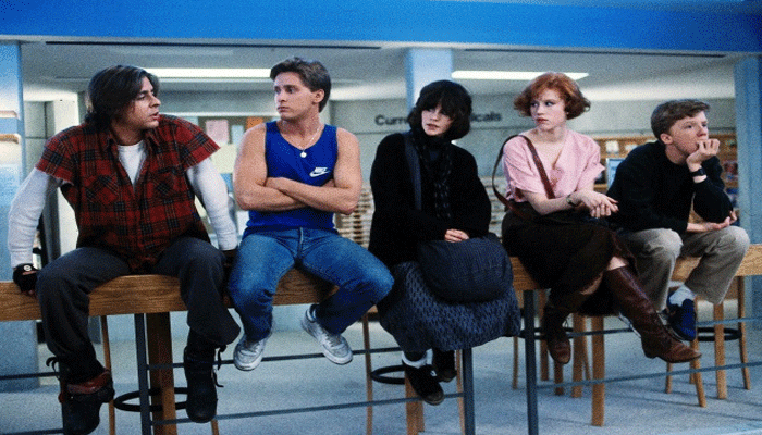 Esta película de culto que se ha convertido en un clásico es una cinta para adolescentes del 85’. Fue escrita y dirigida por John Hughes y su trama, que no puede ser mejor, muestra a cinco jóvenes, dos chicas y tres chicos, que, a medida que pasan juntos un sábado castigados en la biblioteca del instituto, descubren que cada uno de ellos es más profundo que su respectivo estereotipo ya que cada uno de ellos representa un cliché de la escuela secundaria, contando con El criminal con Judd Nelson, La princesa con Molly Ringwald, El cerebro con Anthony Michael Hall, El Atleta con Emilio Estevéz y por último El caso clínico con Ally Sheedy.