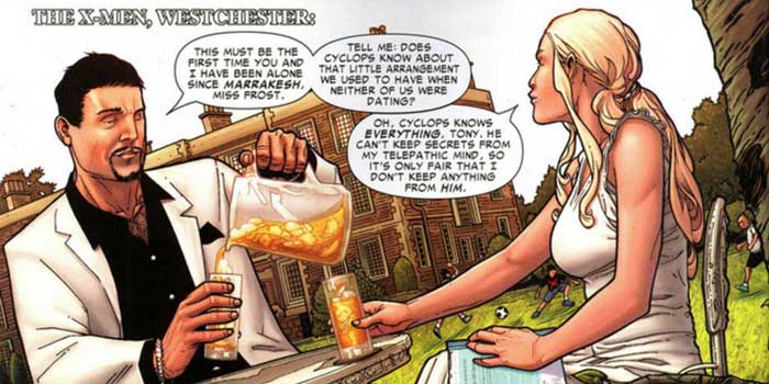 Emma Frost: Es la mutante que pudimos ver en X-Men: primera generación interpretada por January Jones. Estuvo con Iron Man en Civil War #3 de Mark Millar y Steve McNiven.