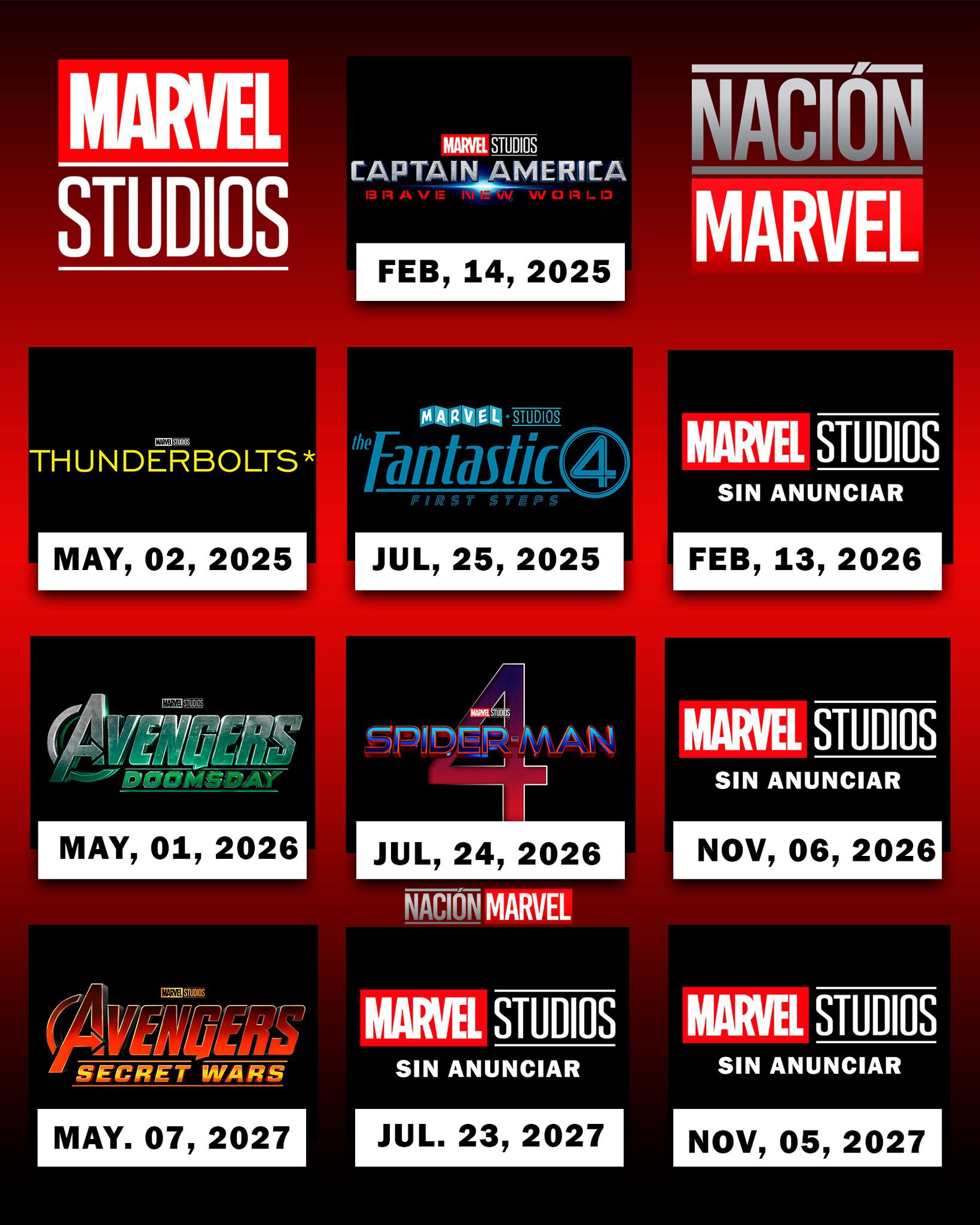 Calendario de Estreno de Próximas Producciones de Marvel del 2025 al 2027 que llegarán y serán lanzados al Cine