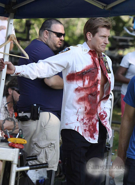 Hay más imágenes del rodaje de la película The Amazing Spider-Man 2, al final no se si hará falta verla porque nos la están contando entera. En el rodaje podemos ver a Denis Leary que interpretó al Captain Stacy en The Amazing Spider-man lleva la misma ropa que cuando murió a manos de El Lagarto, con restos de sangre y todo. Suponemos que volverá en los recuerdos de Peter Parker para atormentar al bueno de Spider-man. Ya que no cumplirá la última voluntad de un moribundo Captain Stacy que le dice que debe mantener a su hija lejos si quiere protegerla.