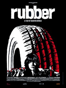 Rubber es un ensayo del absurdo en el cine, una tesis camuflada bajo la historia de un neumático que, si te descuidas, te revienta la cabeza, literalmente. Este largometraje intenta mostrar al espectador que la vida es una maraña de sinsentidos. Sostiene que la razón (en el sentido de “causa de algo”) es puramente artificial, un invento del ser humano para intentar explicar lo que le rodea. Todo este esfuerzo del hombre será en vano, no existe razón.