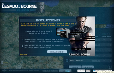 Los premios que puecomo un primer ‘El legado de Bourne’ son un premio consistente en un Ipad de Apple, un segundo premio consistente en 10 camisetas reversibles promocionales de la película y un tercer premio consistente en 5 packs de películas de la trilogía Bourne en DVD. Para participar tienes que entrar a www.bourne-eljuego.es, encontrar los 5 objetivos que te marcan en el juego y superar las pruebas que te plantean en el menor tiempo posible.