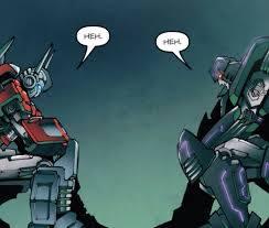 En muchos cómics aparecen héroes y villanos luchando desesperadamente unos contra otros pero sin que nadie se plantee el porqué más allá de la lucha antes mencionada entre buenos y malos. El cómic da respuesta al porqué y lo hace con una charla de gran trascendencia entre Optimus Prime y Megatron en la cárcel: “Deja que te diga algo, Prime. No te odio. Oh, odio todo lo que representas y odio los obstáculos que colocas en mi camino, pero no creas que no entiendo por qué tratas de detenerme. Te disculpo por ello. ¿Y tú?, ¿me odias a mí? Creo que jamás te he escuchado decirlo”. A lo que Prime responde: “Sí. No. No sé cómo me haces sentir. Odiar es una palabra demasiado… fácil. Puede que te sostenga a ti Megatron, pero a mí me rebaja. Me hace inferior”. Y eso es solo el comienzo, los dos enemigos van recordando sus batallas, por qué se han perseguido durante tanto tiempo, sus orígenes y cómo eran críticos con el senado. Un cara a cara de una gran profundidad al estilo de la charla que cierra el cómic ‘La broma asesina’, de Alan Moore, entre Batman y el Joker.