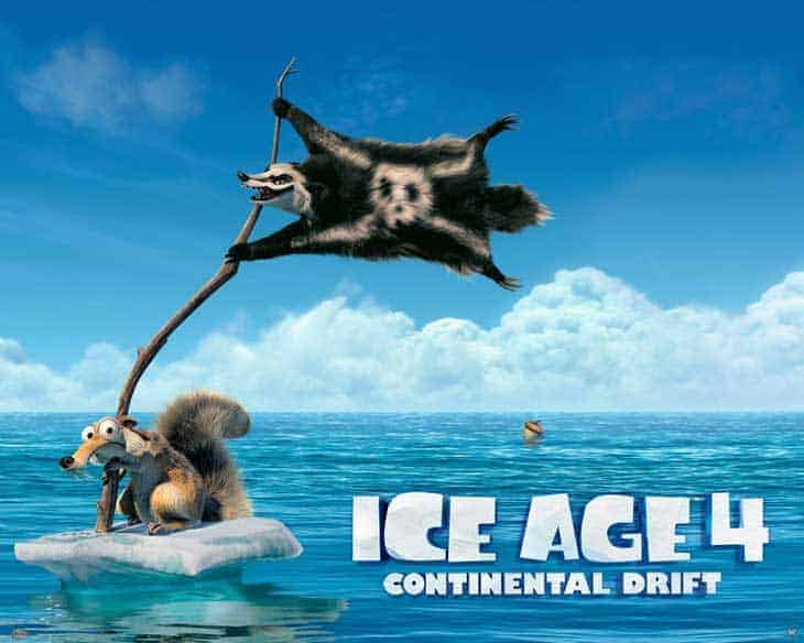 Es una típica película familiar. Donde pasan problemas de familia, de adolescentes, porque como siempre la familia de ICE AGE va creciendo un poquito más, al principio son tres, luego viene la mujer, luego la niña y con ella los problemas de la edad. Todo eso mezclado con escenas espectaculares de los continentes que se separan y que eso además lateralmente le trae problemas inesperados a la familia. También tenemos una historia de piratas, con todas las cosas que tiene una película de piratas, barcos piratas, cañonazos, fechorías, venganzas, luchas de espadas y además volvemos a ver a la ardilla Scrat, que es la estrella de ICE AGE con su bellota.