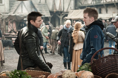 Tommy Wirkola dando instrucciones a Jeremy Renner durante el rodaje de Hansel y Gretel: Cazadores de brujas