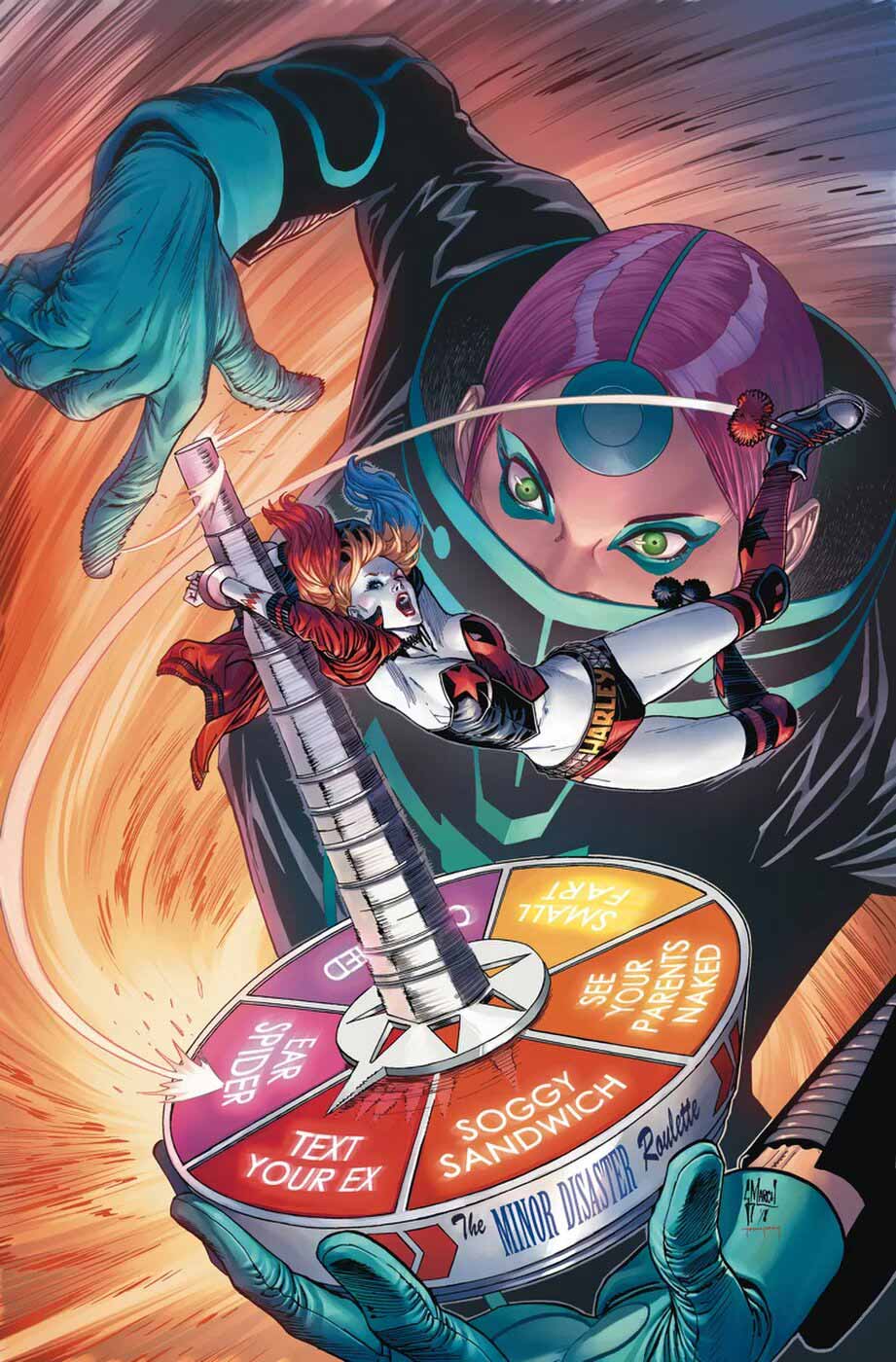 EDICIÓN ORIGINAL: Harley Quinn núms. 53-56 USA || FECHA PUBLICACIÓN: Junio de 2019 || GUIÓN: Mark Russell, Sam Humphries || DIBUJO: Alisson Broges, John Timms, Mirka Andolfo || FORMATO: Rústica, 112 págs. A color.