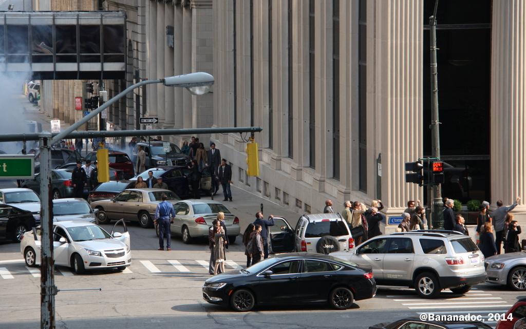 Es lo que tiene realizar una superproducción como esta, que al rodar en una gran ciudad el elemento sorpresa del rodaje se pierde y cualquiera que pase por ahí, o viva justo encima de donde se este realizando puede grabarlo todo desde su móvil y colgarlo en Youtube, así pues tenemos imágenes del rodaje de ‘Batman v Superman: Dawn of Jusctice’ de una escena en la que Bruce Wayne (Ben Affleck) está implicado y donde podemos ver imágenes de su doble por lo que la escena debe de entrañar cierto riesgo (así que avisados quedáis si decidís ver las imágenes ya que contienen potenciales SPOLIERS del film). También podemos ver a Jena Malone protagonista de ‘Los juegos del hambre: Sinsajo’, la actriz ya había trabajado antes a las ordenes del director Zack Snyder en ‘Sucker Punch’ aunque tampoco se sabe que papel interpreta en el film, de momento es top secret ya que ni en IMDB se menciona todavía la participación de Malone en ‘Batman v Superman’.