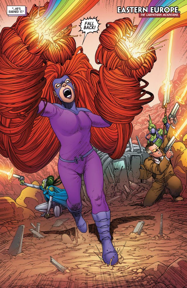 Que tras el más esperado crossover del año veremos unos inhumanos cambiados es algo que todos sabemos. En realidad, todo cambiará. Que nos deparará el futuro es algo que más vale no anticipar. Quedemonos con el final de una larga historia que Soule por fin cierra. Y digo por fin porque empezaba a perderse el sentido de la misma con tanta interrupción. Legado fue creado por el escritor en su epoca en Thunderbolts, y esta exprimiendo mucho al mismo y su naturaleza de ser con conocimientos antiguos, y con una maldad bastante evidente. Y de paso recupera a Karnak, el miembro de la familia real que Matt Fraction mató en su primer, y ultimo, numero de la serie.
