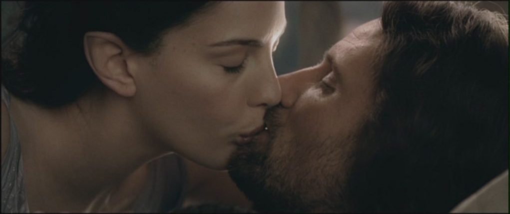 La mitad de la obra y también del segundo tercio marca el inicio de la partitura más contundente, no sin antes dejarnos una exquisita secuencia (que se proyectará igualmente minutos más tarde con la protagonista femenina de los elfos y su padre): el recuerdo por parte de Aragorn de sus últimas vivencias junto a Arwen. Una pieza musical de extraordinario nivel romántico (como la mencionada posterior), de una evocación fantástica y que por su fuerza y calidad parte el metraje radicalmente en dos.