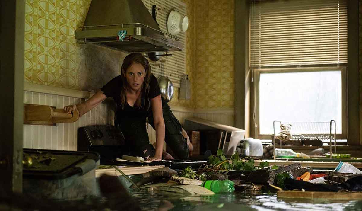 Infierno bajo el agua nos presenta la pesadilla en la que se ve envuelta la joven Haley a la que da vida Kaya Scodelario, quien se ve atrapada en mitad de una tormenta, que libera a dos caimanes que se las harán pasar canutas a ella y a su padre, atrapados en casa, sin poder recibir ayuda por el caos del huracán que está desolando el lugar.