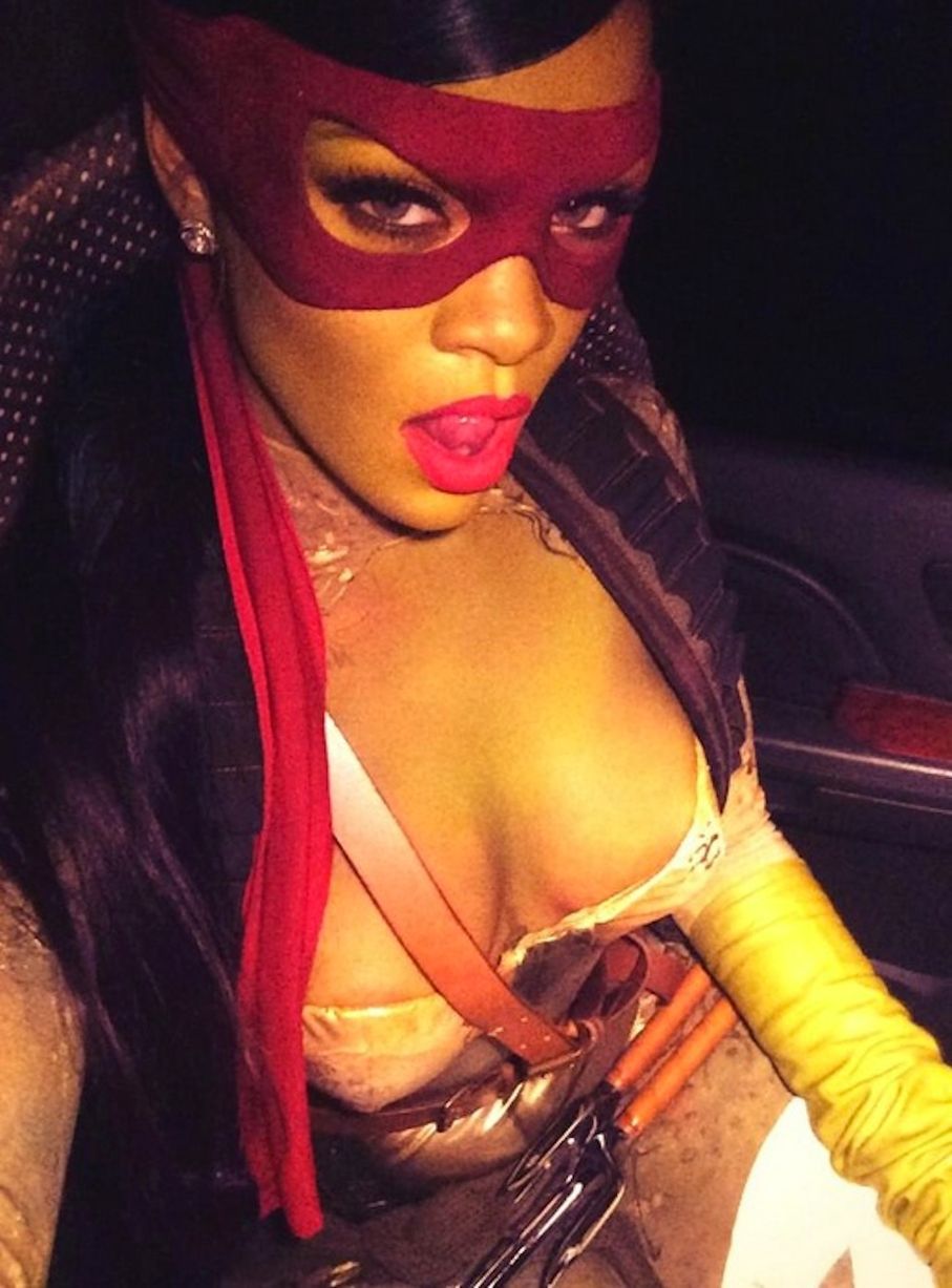 La cantante y actriz de 26 años de Barbados, Rihanna, fue vista en Halloween acompañada de su séquito en la discoteca 1OAK de la ciudad de Nueva York disfrazada de uno de los miembros de las tortugas ninja mutantes, Raphael. Hay que recordar que las famosas tortugas creadas por Kevin Eastman y Peter Laird vuelven a estar de moda más que nunca gracias a la nueva película estrenada el pasado mes de agosto.