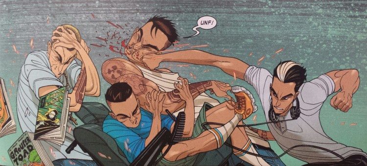 Por encima de todo y aumentando la calidad de un gui0n normalito tenemos a Tradd Moore, el artista que impresiona con sus portadas en ‘Vengadores Secretos’ y ganaba enteros con cada número completo que dibujaba de ‘Luther Strode’, es lo mejor de este tomo.