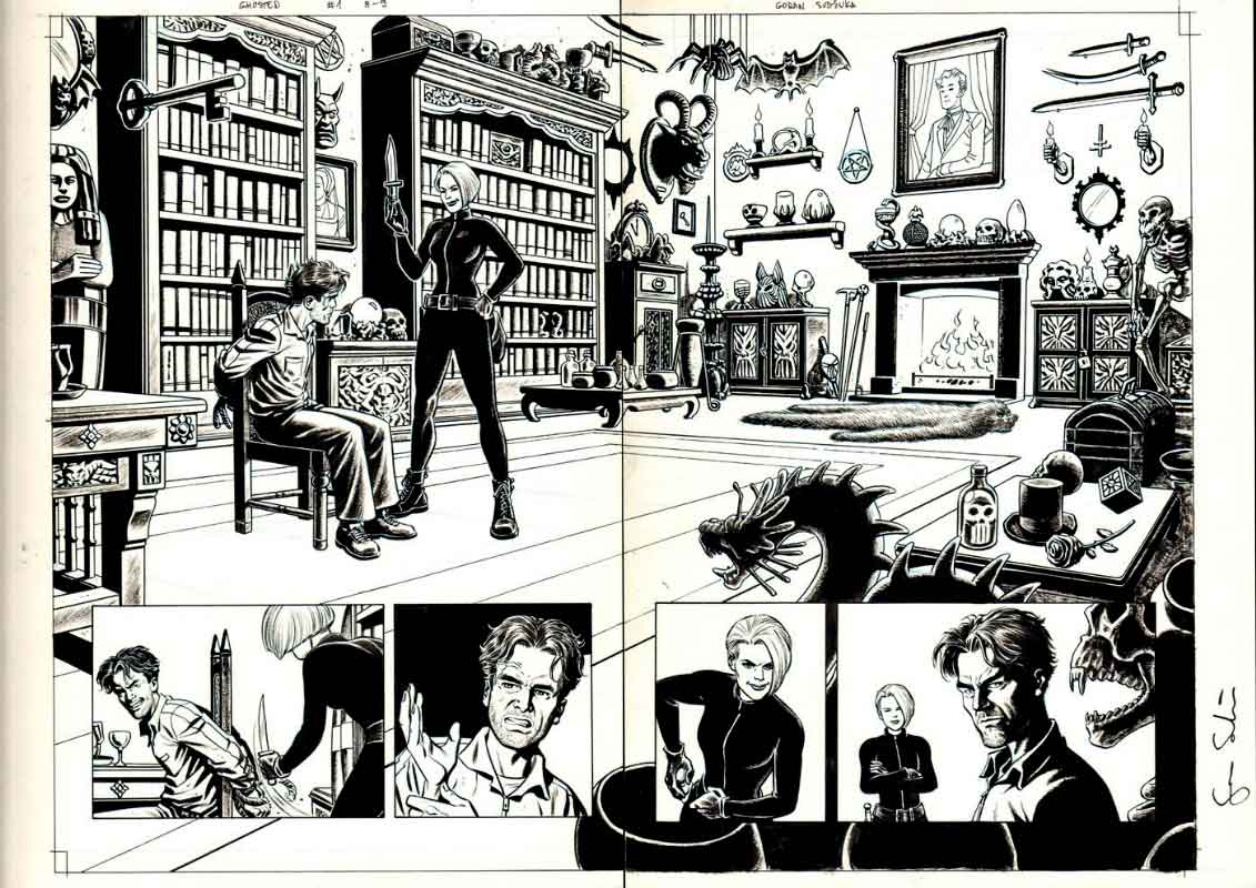 Pues al iniciar Fantasmas, el comic-book, nos encontramos precisamente con una visita a una mansión encantada. Con un grupo de cazadores de lo sobrenatural como parte del equipo formado por Jackson Winters, un ex presidiario que recientemente fue liberado de la cárcel para que haga lo que mejor se le da, robar algo. Pero esta vez no se trata de mangar dinero de una caja fuerte, ni tirarle del bolso a una viejecita, ni siquiera de volver a repetir el fracaso que supuso su último plan, asaltar un casino en el que perdió a todos los que trabajaban con él. Ahora tiene que sacar a un fantasma de esa casa y llevárselo a un coleccionista codicioso. Por supuesto, nada de lo que podamos pensar en un principio tiene parecido con la realidad a la que nos vamos a enfrentar.