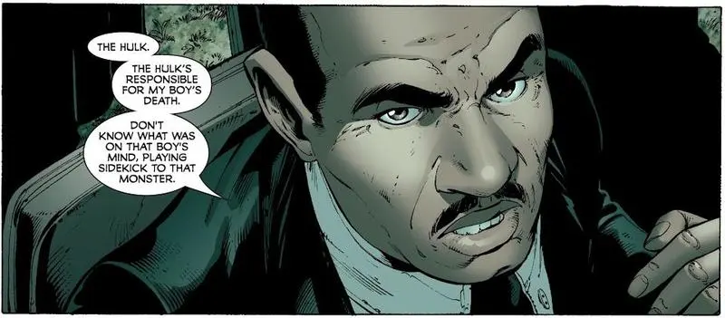 Una gran diferencia entre los cómics y el UCM, sería que Gideon nunca fue fiscal en los cómics sino un político que culpó a Hulk de la muerte de su hijo, negando la causa real.