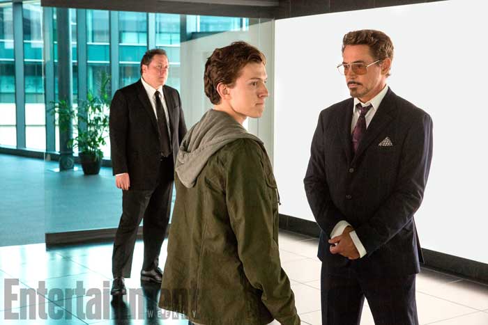 L to R: Jon Favreau, Tom Holland and Robert Downey Jr.