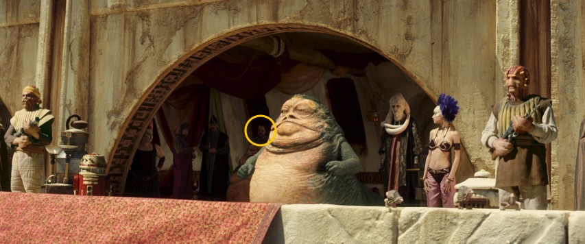 ¿Y cuándo aparece Rob Coleman? Podrás verlo en algunas de las escenas en las que aparece el palco, pero siempre en el fondo y sin texto. Al fin y al cabo, su papel se limitaba a dar un poco de ambiente al palco.