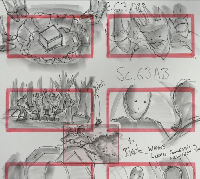 Hoy el día va de SPOILERS… Zack Snyder ha revelado un SPOILER de la ‘Liga de la Justicia‘ compartiendo un storyboard del film. Uno de esos libretos donde se preparan las escenas. En él nos presenta el momento en el que un grupo de humanos entierran una de las tres Cajas Madre que Darkseid está buscando. Y por las que su acólito Steppenwolf vendrá a la Tierra. Las otras dos estarán en poder de las Amazonas (Themyscira) y los Atlantes (Atlantis). Lo curioso es que este storyboard de la ‘Liga de la Justicia‘ pone manifiesto que esta información será revelado al propio Bruce Wayne (Ben Affleck). ¿Qué hará Batman con un conocimiento como ese? ¡A continuación os mostramos el storyboard que ha compartido Zack Snyder! Esperamos comentarios: